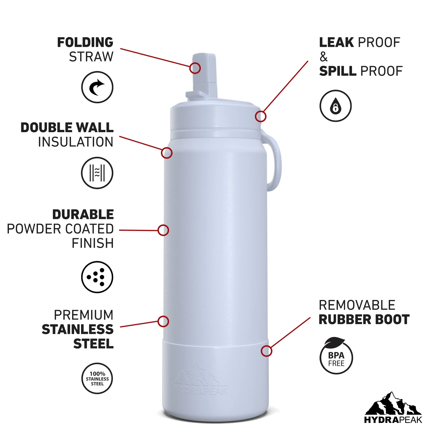 - The Hydrapeak sports water bottle comes in a variety of aesthetic colors and sizes to choose from. Our metal water bottle comes in 26oz, 32oz, and 40oz sizes, making it a great kids water bottle and an adults water bottle.