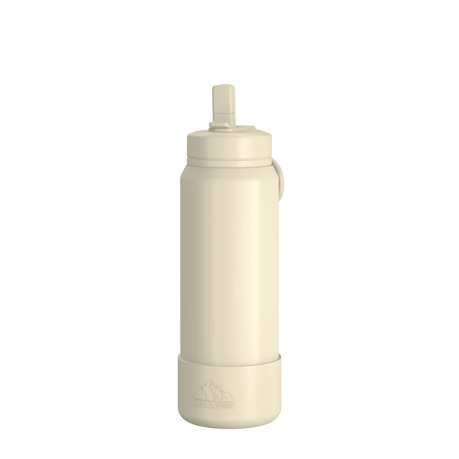 26oz Insulated Water Bottles With Matching Straw Lid And Rubber Boot- Modern Cream