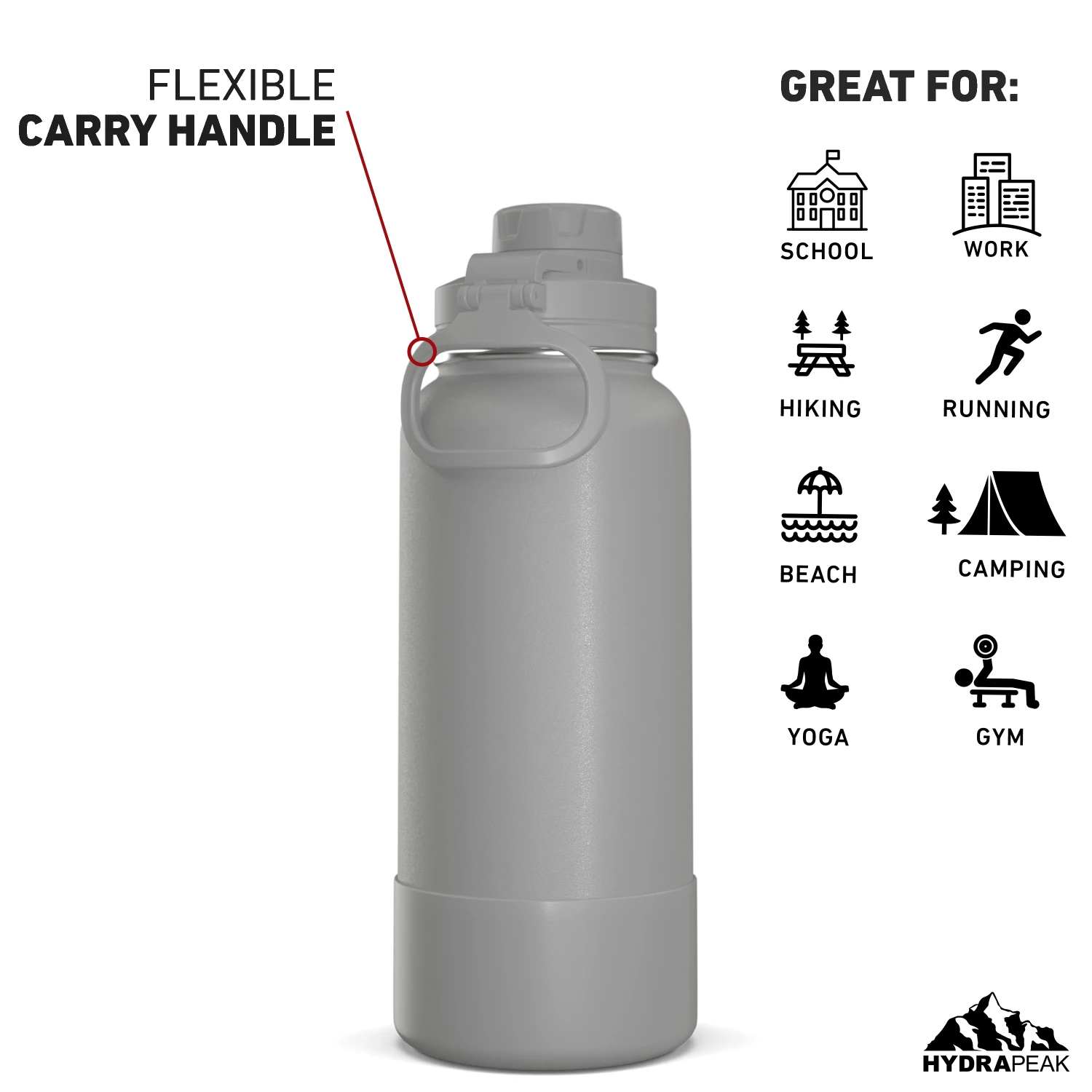 - The Hydrapeak sports water bottle comes in a variety of aesthetic colors and sizes to choose from. Our metal water bottle comes in 26oz, 32oz, and 40oz sizes, making it a great kids water bottle and an adults water bottle.