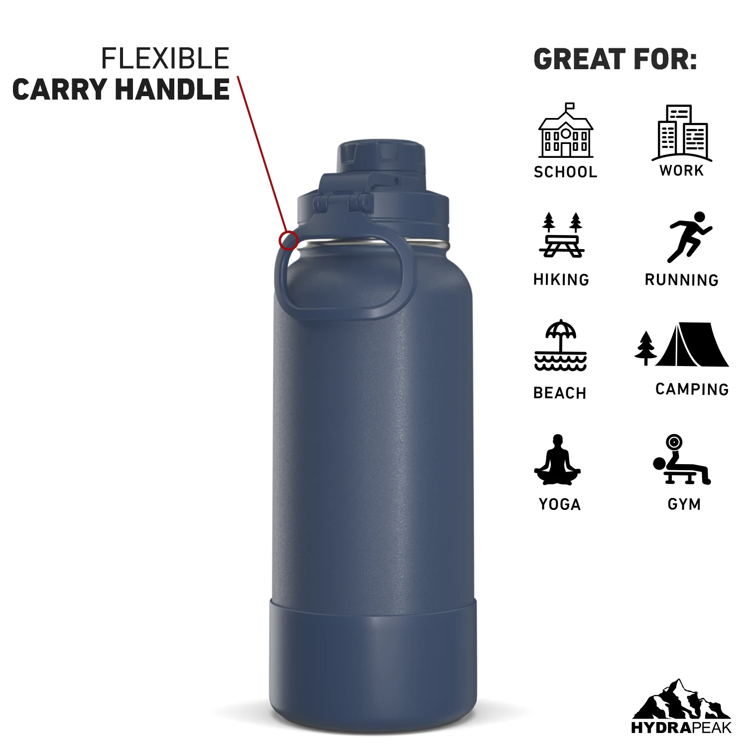 32oz Insulated Water Bottles With Matching Chug Lid And Rubber Boot- Navy