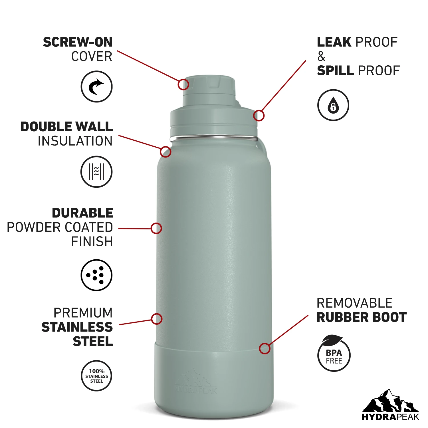 - The Hydrapeak sports water bottle comes in a variety of aesthetic colors and sizes to choose from. Our metal water bottle comes in 26oz, 32oz, and 40oz sizes, making it a great kids water bottle and an adults water bottle.