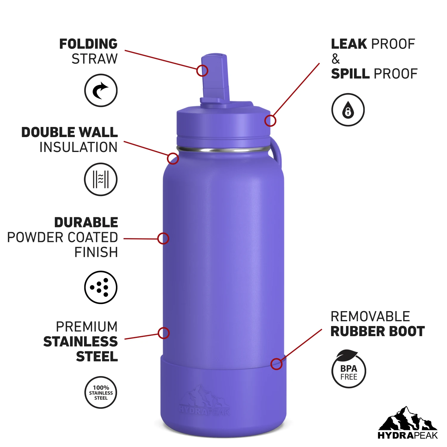 - The Hydrapeak sports water bottle comes in a variety of aesthetic colors and sizes to choose from. Our metal water bottle comes in 26oz, 32oz, and 40oz sizes, making it a great kids water bottle and an adults water bottle.