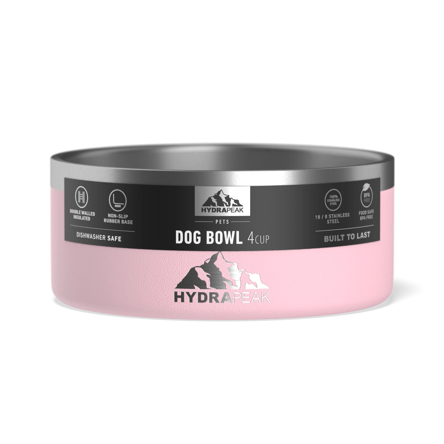 4 Cup Stainless Steel Dog Bowls For Water Or Food- Pink