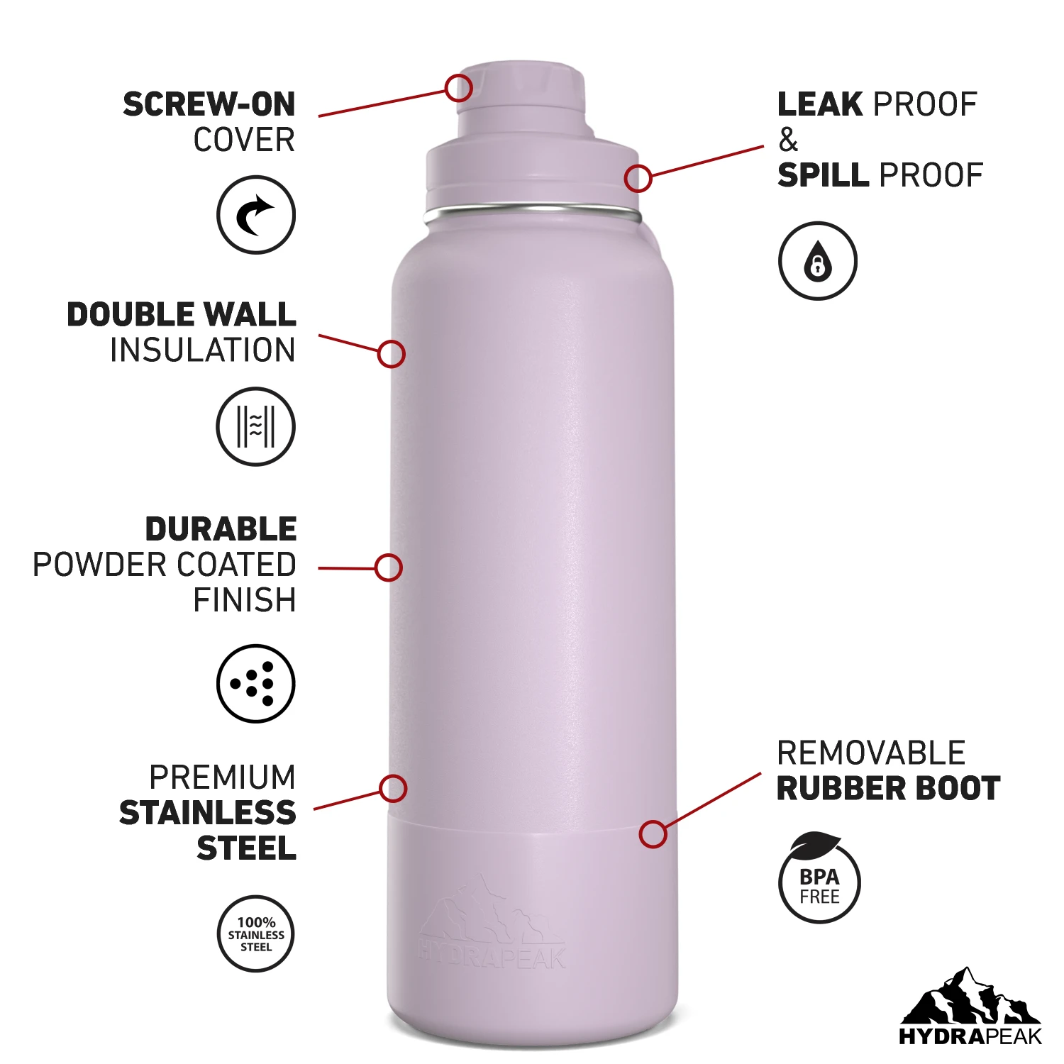 - The Hydrapeak sports water bottle comes in a variety of aesthetic colors and sizes to choose from. Our metal water bottle comes in 26oz, 32oz, and 40oz sizes, making it a great kids water bottle and an adults water bottle.