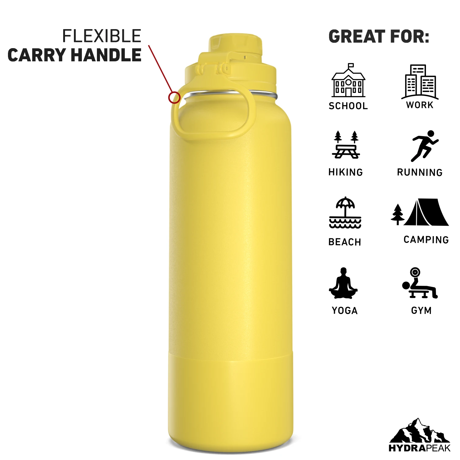 40oz Insulated Water Bottles With Matching Chug Lid And Rubber Boot – Lemon