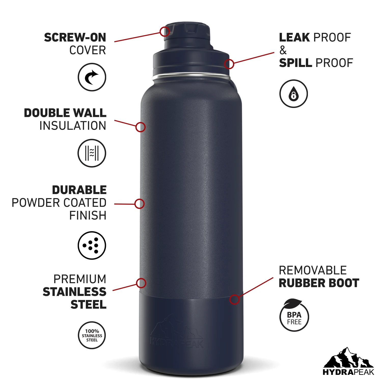 40oz Insulated Water Bottles With Matching Chug Lid And Rubber Boot- Navy