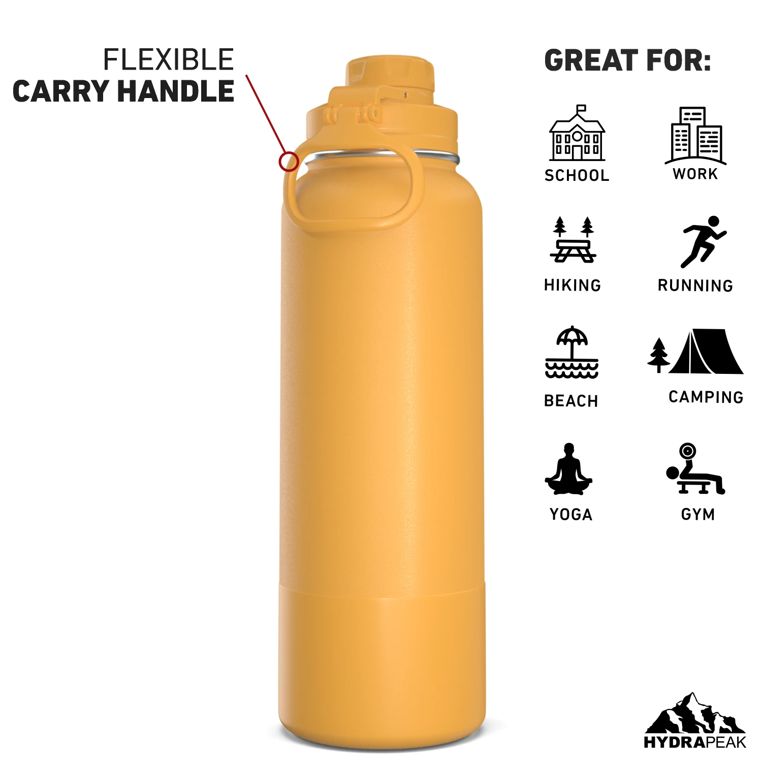 - The Hydrapeak sports water bottle comes in a variety of aesthetic colors and sizes to choose from. Our metal water bottle comes in 26oz, 32oz, and 40oz sizes, making it a great kids water bottle and an adults water bottle.