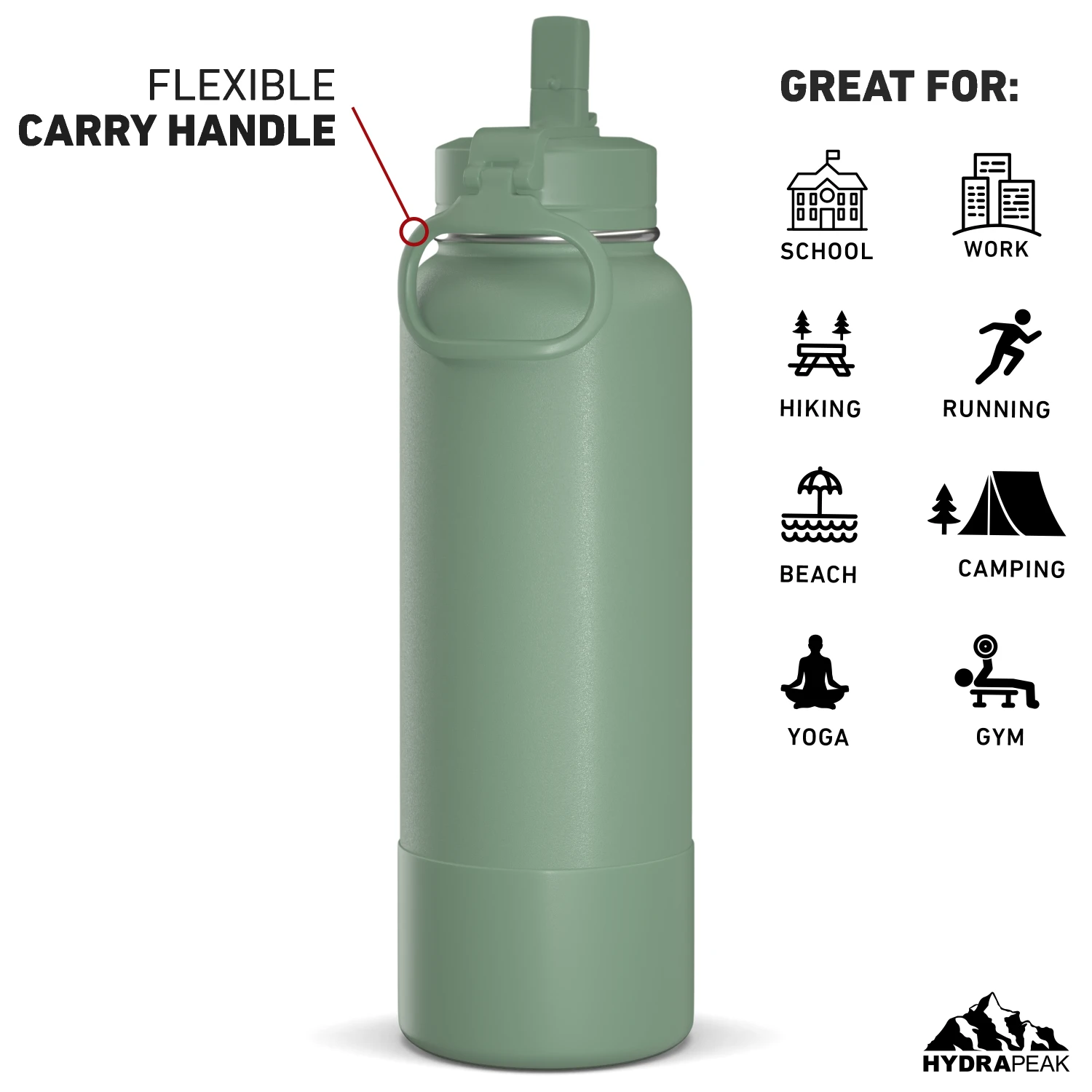 - The Hydrapeak sports water bottle comes in a variety of aesthetic colors and sizes to choose from. Our metal water bottle comes in 26oz, 32oz, and 40oz sizes, making it a great kids water bottle and an adults water bottle.