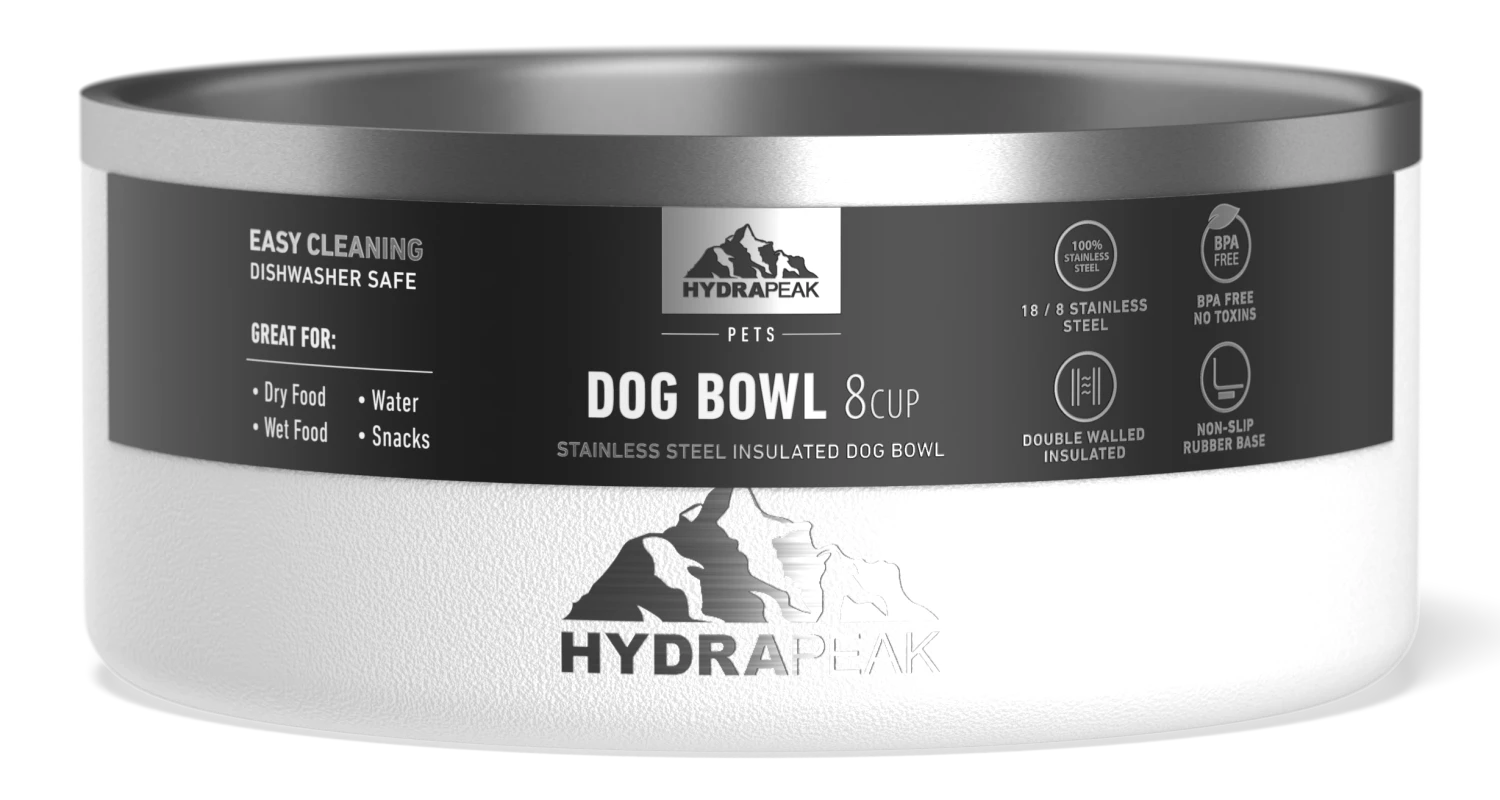 8 Cup Stainless Steel Dog Bowls For Water Or Food- White