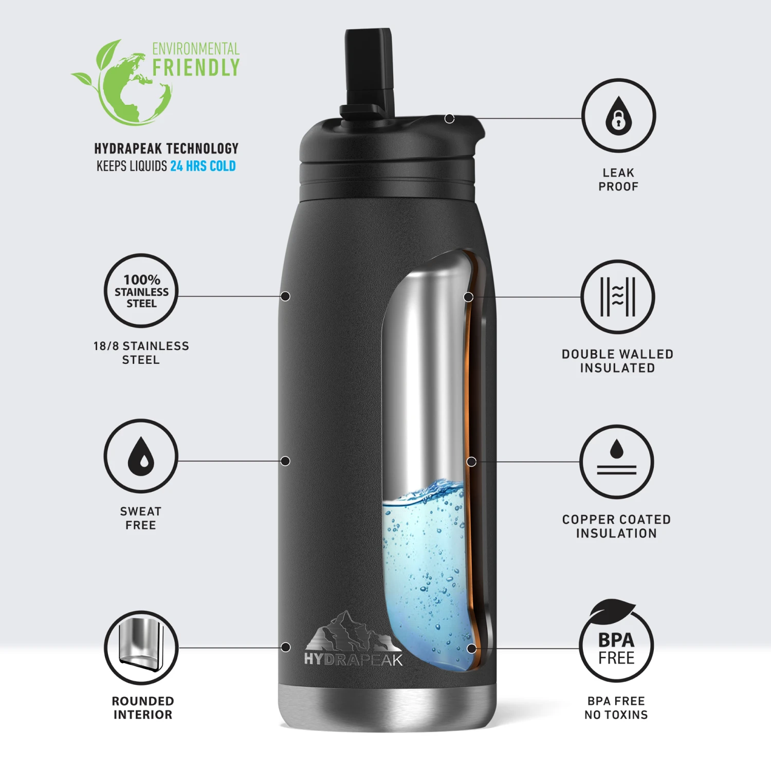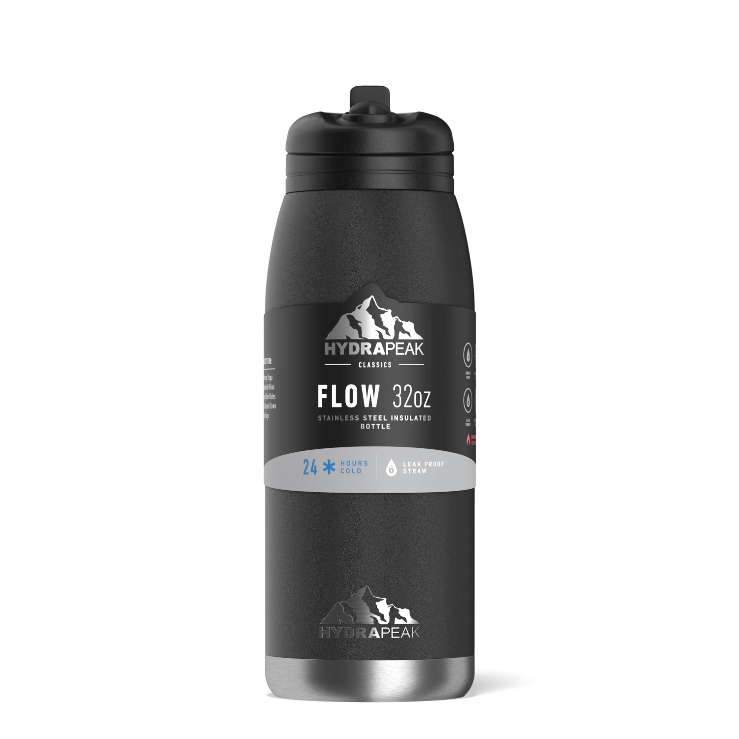 Flow 32oz Stainless Steel Insulated Water Bottle With Straw Lid Bottle – Black