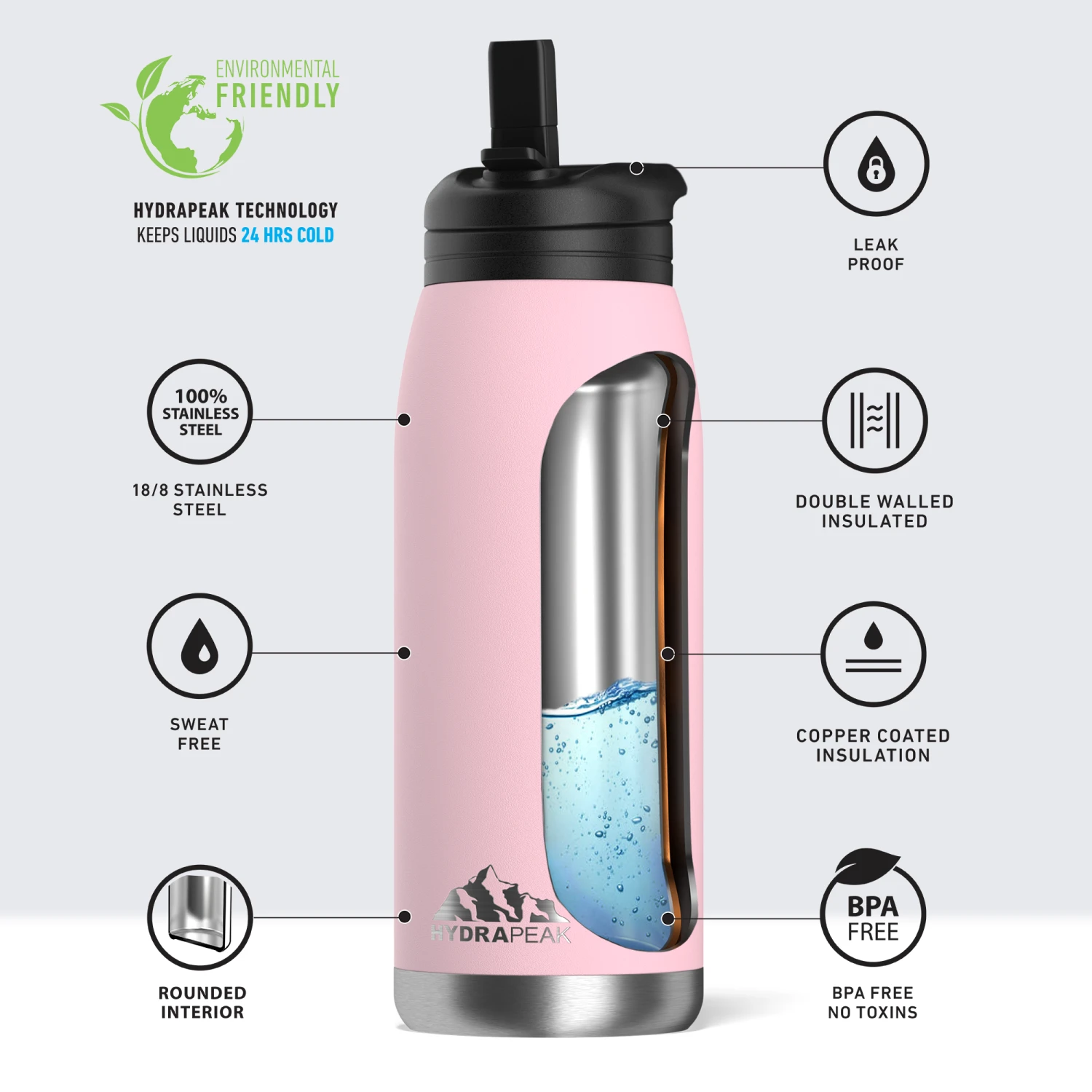 Flow 32oz Stainless Steel Insulated Water Bottle With Straw Lid Bottle- Pink