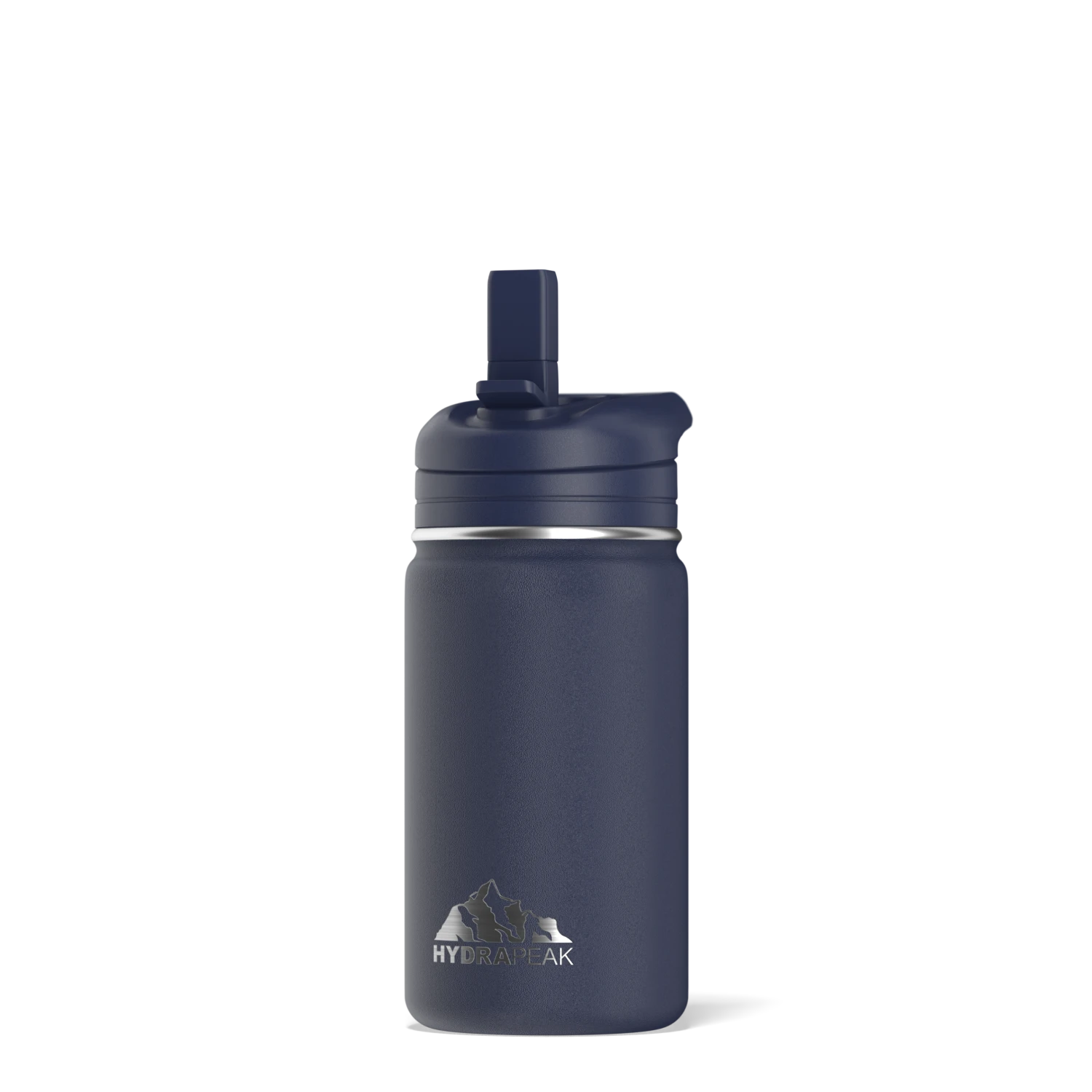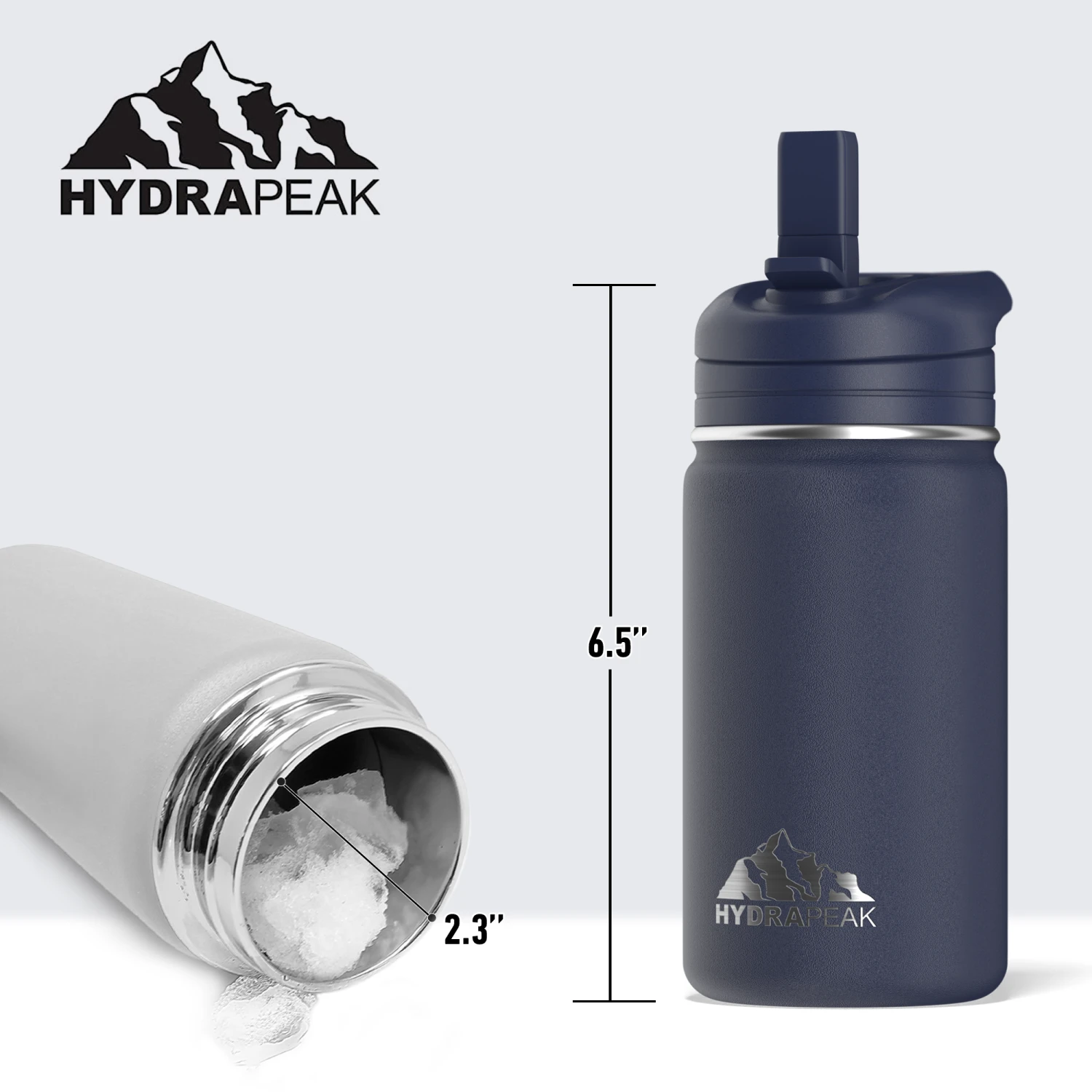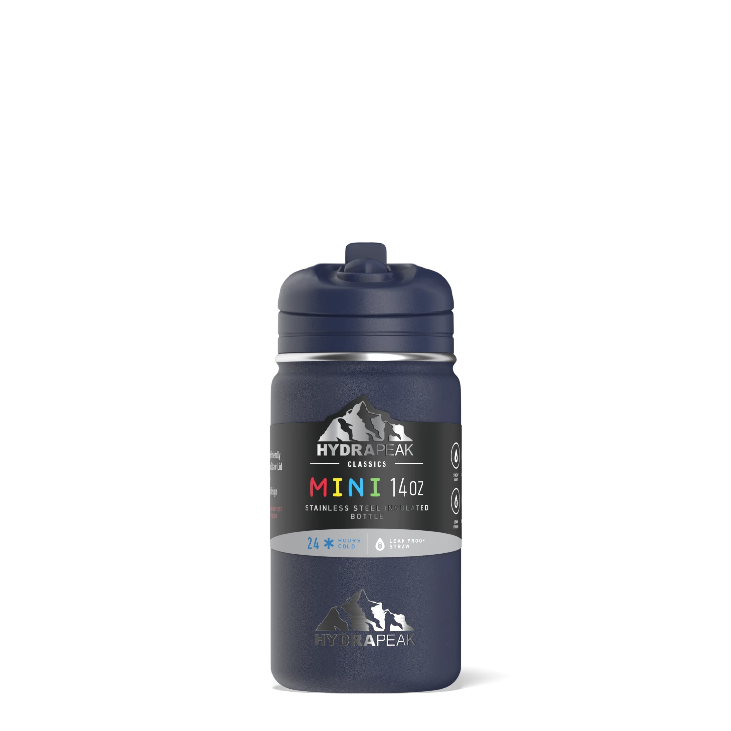 Made with vacuum insulated stainless steel the mini 14-ounce kids’ water bottle by Hydrapeak is 100 % free of bpa, bps, bpf, phthalate-, and PVC-free.