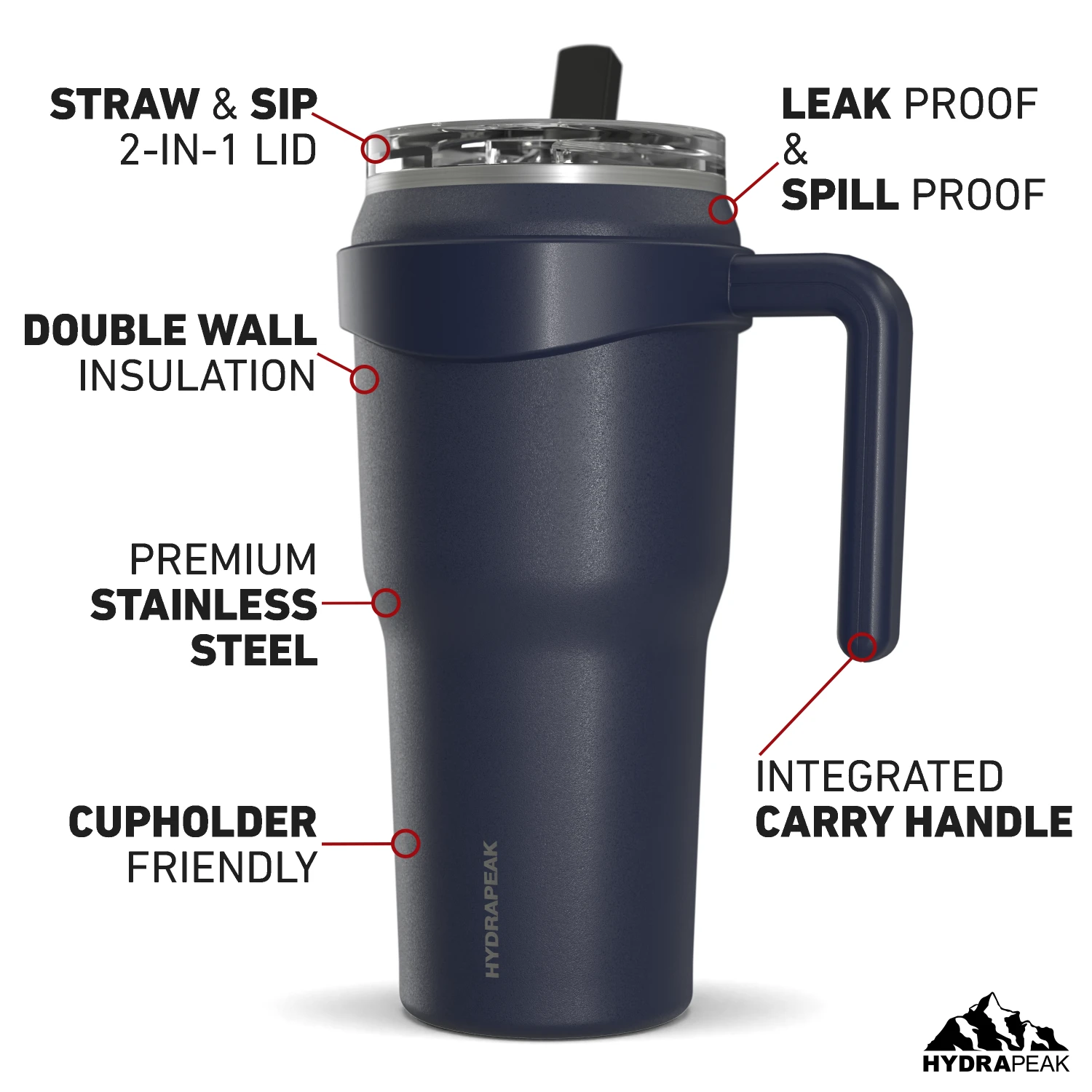 - LEAK-PROOF and SWEAT-PROOF; Hydrapeak created this 40 oz tumbler so that whatever you put in it, stays in, No more worrying about leaks, spills, or sweating, thanks to the innovative design of this insulated coffee mug with handle
