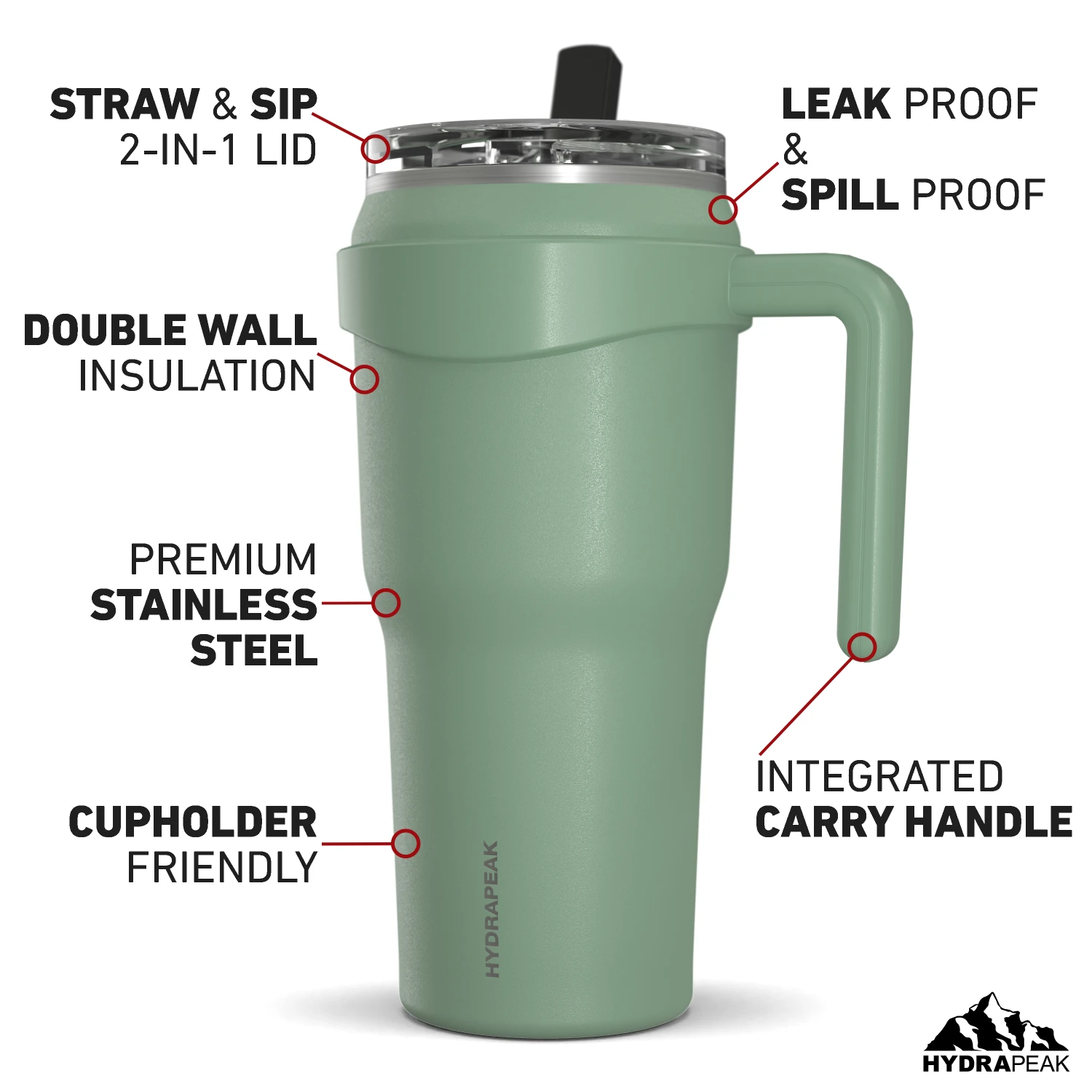 - LEAK-PROOF and SWEAT-PROOF; Hydrapeak created this 40 oz tumbler so that whatever you put in it, stays in, No more worrying about leaks, spills, or sweating, thanks to the innovative design of this insulated coffee mug with handle