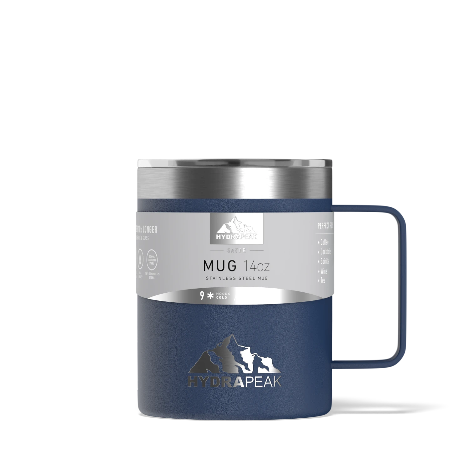 The NEW lightweight 14-ounce coffee mug is perfect for camping, tailgating, and picnics. Whether you’re sipping coffee, tea, cold brew, or enjoying a warm whiskey on a cold night you can enjoy the moment anytime anywhere and everywhere with Hydrapeak 14oz stainless steel double vacuum Insulated drinking mug with sliding lid. Grab a refreshing drink at the campsite, BBQ or picnic with an impact resistant shatterproof Hydrapeak 14oz stainless-steel hefty unbreakable reusable, in assortment colors, better than disposable plastic cups travel coffee mug.Â