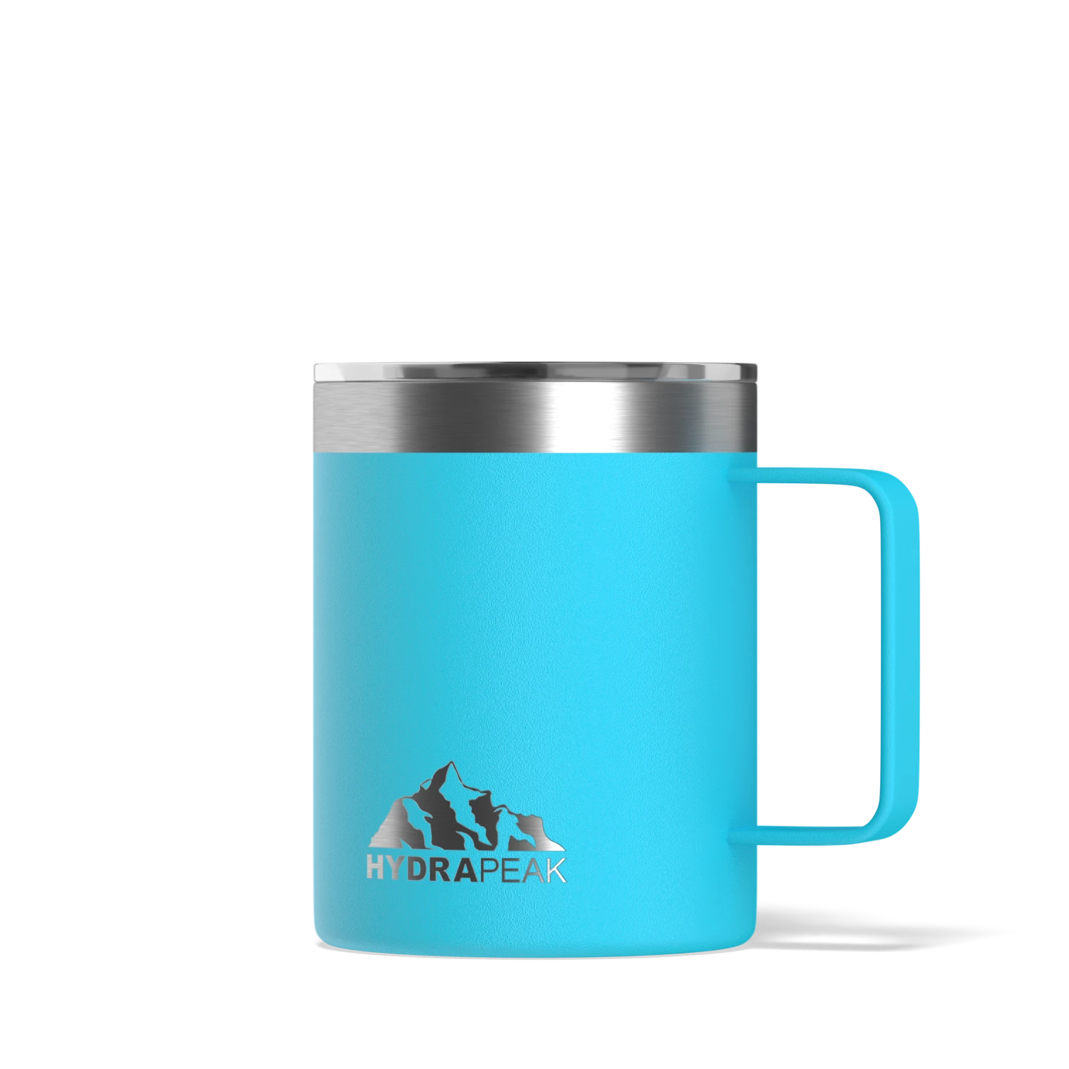 The NEW lightweight 14-ounce coffee mug is perfect for camping, tailgating, and picnics. Whether you’re sipping coffee, tea, cold brew you can enjoy the moment anytime anywhere and everywhere with Hydrapeak 14oz stainless steel double vacuum Insulated drinking mug with sliding lid. Grab a refreshing drink at the campsite, BBQ or picnic with an impact resistant shatterproof Hydrapeak 14oz stainless-steel hefty unbreakable reusable, in assortment colors, better than disposable plastic cups travel coffee mug.Â