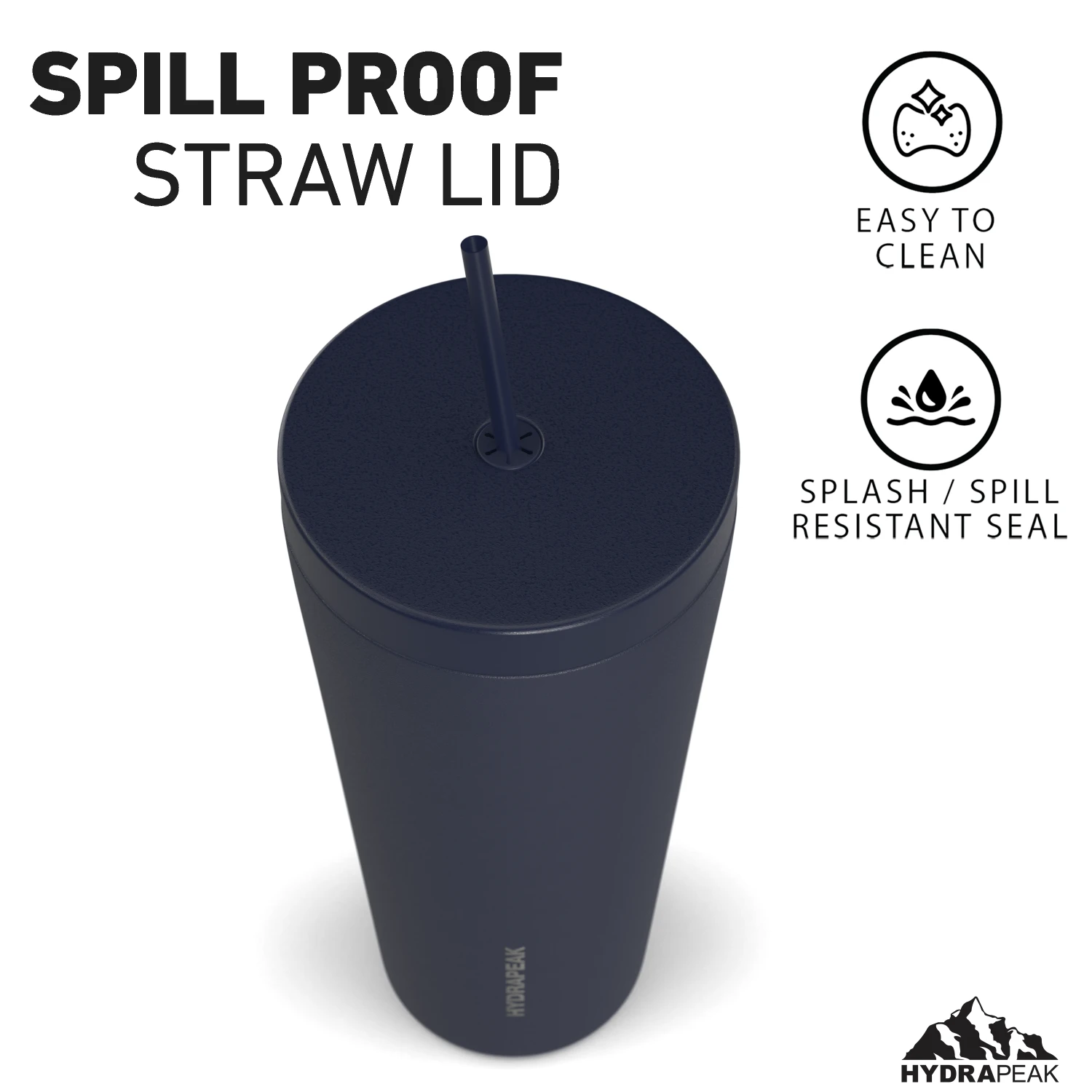 - Spill Proof Straw Lid: Our Hydrapeak stainless steel tumbler features a spill proof lid making the 25 oz tumbler ultra portable. Let spills and leaks be a thing of the past. Additonally the non-slip rubber base prevents sliding and scratching.